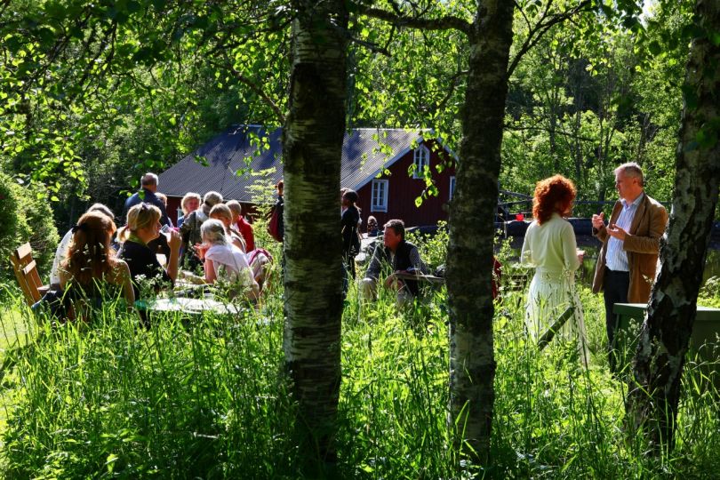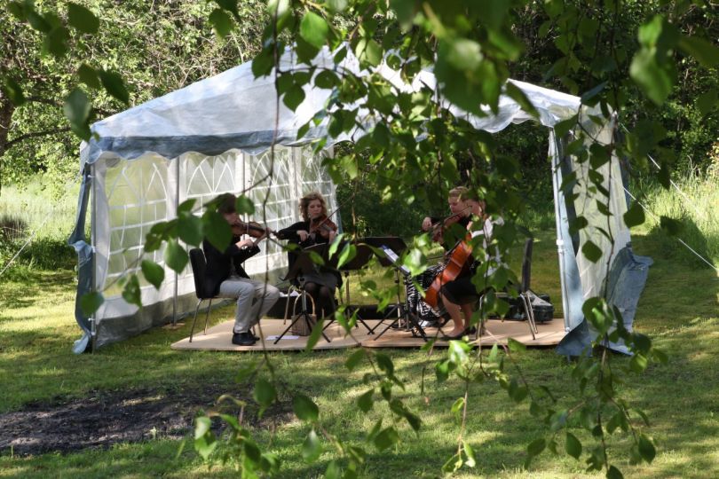 Stråkkvartettens eget program i trädgården – och tur med vädret hade vi också. Vi blev lite nervösa när det småregnade på morgonen… men ni ser ju!